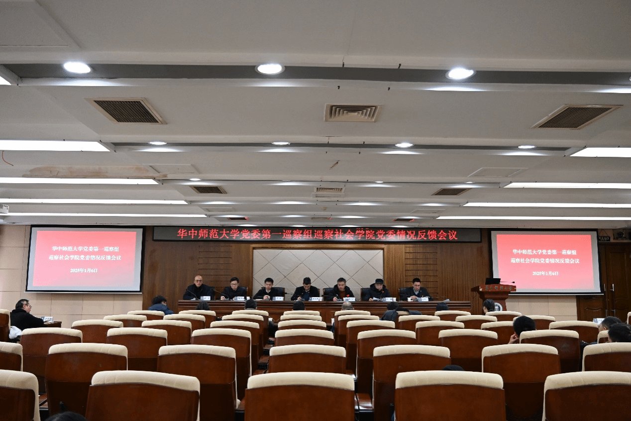 根据校党委统一部署,2025年1月6日,校党委第一巡察组向社会学院党委反馈了巡察情况。巡察组组长王旺胜分别向学院党委书记冯圣兵、院长符平和学院领导班子反馈了巡察情况。校党委常委、副校长李鸿飞出席会议并讲话。冯圣兵在反馈大会上作表态发言。符平主持会议。